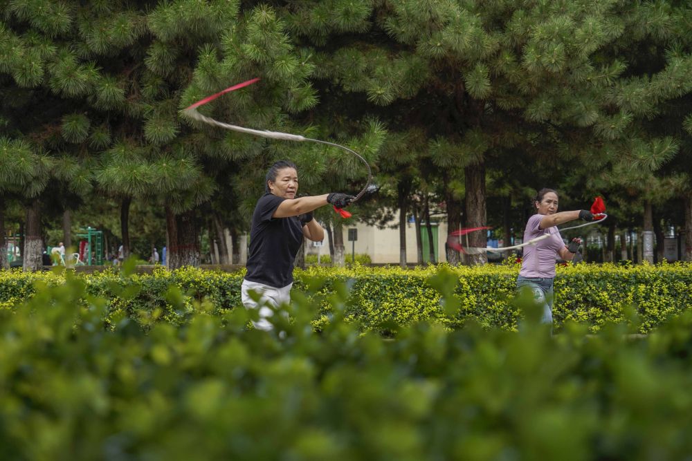 2023年8月6日,市民在河北省遵化市人民公園練習健身鞭。新華社發(fā)(劉滿(mǎn)倉攝)