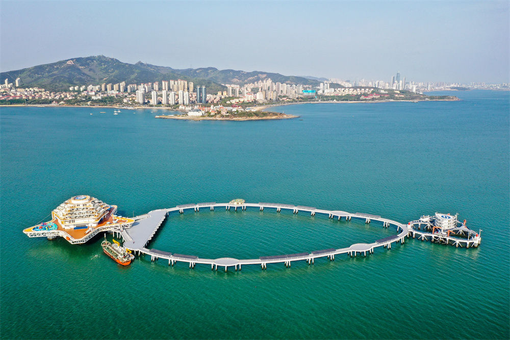 迎著(zhù)夏日海風(fēng),記者乘船登上這塊深?!皩毷?。這是融合海洋漁業(yè)、海工裝備、海洋文旅、科普教育、影視娛樂(lè )等功能于一體的“海上綜合體”。河北游客陳家棟海上垂釣之后,還參觀(guān)了海洋科普館,體驗深海電梯。他說(shuō):“這里的項目特色鮮明,比城里的綜合體更有趣?!?/p>