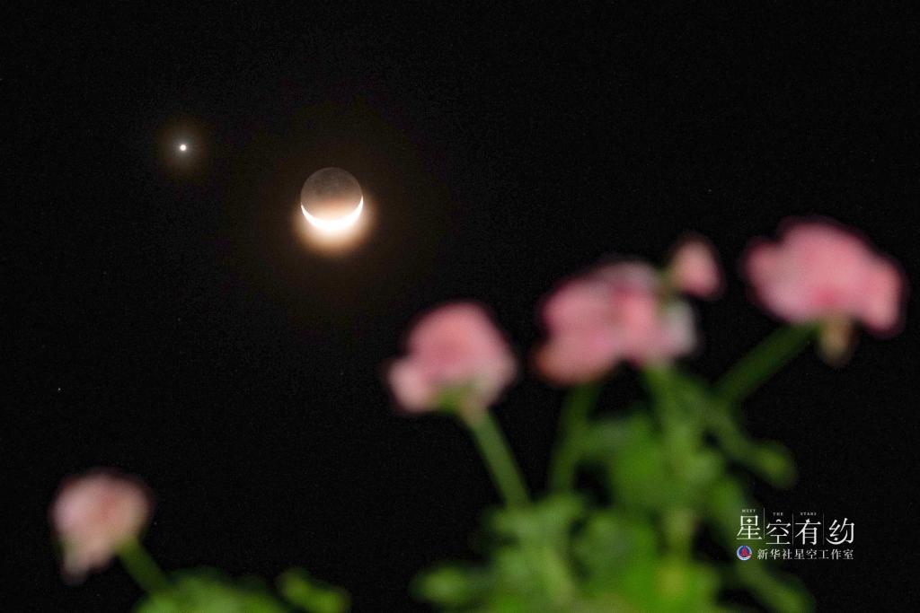 云南省天文攝影愛(ài)好者羅新才2023年4月23日在大理洱源拍攝的金星和月亮。(本人供圖)