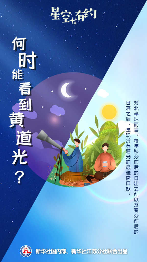 新華社南京9月21日電(記者王玨玢、邱冰清)23日迎來(lái)秋分節氣。秋分前后的一段時(shí)間,也是欣賞太陽(yáng)系“塵埃之光”——黃道光的好時(shí)機。什么是黃道光?黃道光怎么賞?天文科普專(zhuān)家為您揭秘。