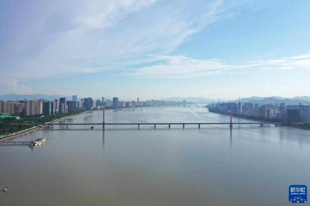 這是6月28日拍攝的流經(jīng)杭州的錢(qián)塘江(無(wú)人機照片)。新華社記者 黃宗治 攝