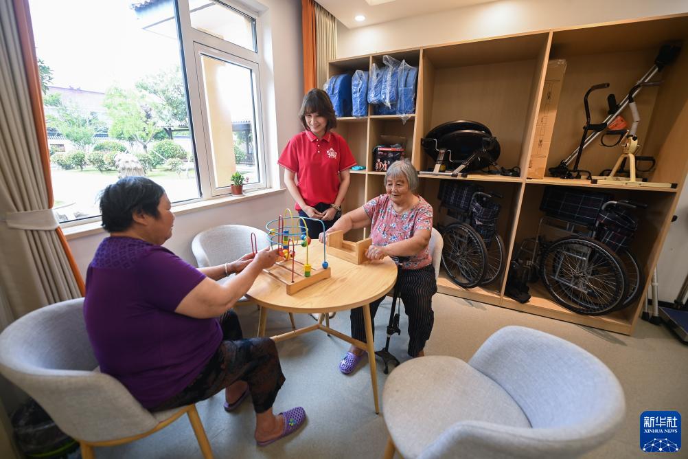 6月15日,老人們在位于嘉興市秀洲區王江涇鎮居家養老服務(wù)中心內玩游戲。新華社記者 徐昱 攝