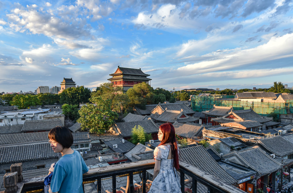 人們在北京什剎海附近咖啡廳露臺欣賞風(fēng)景(6月10日攝)。新華社記者 陳鐘昊 攝