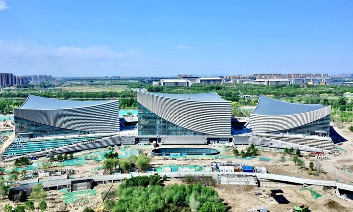 建設中的北京城市副中心劇院(4月30日攝,無(wú)人機照片)。新華社發(fā)(北京建工集團提供)