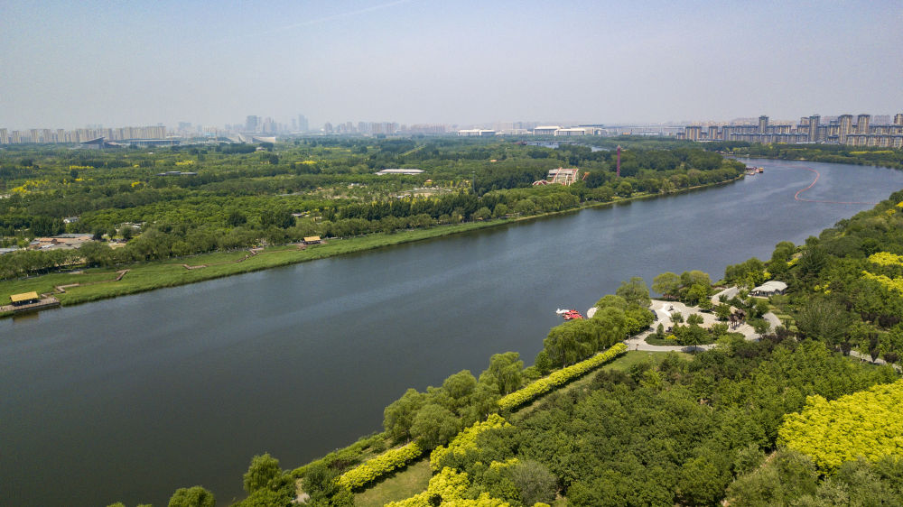 位于北京城市副中心的大運河森林公園(5月9日攝,無(wú)人機照片)。新華社記者 鞠煥宗 攝