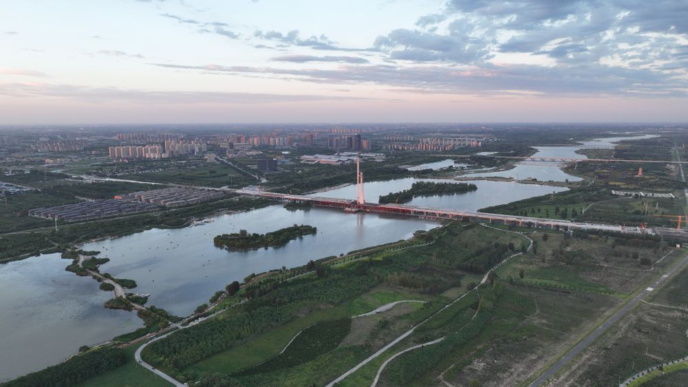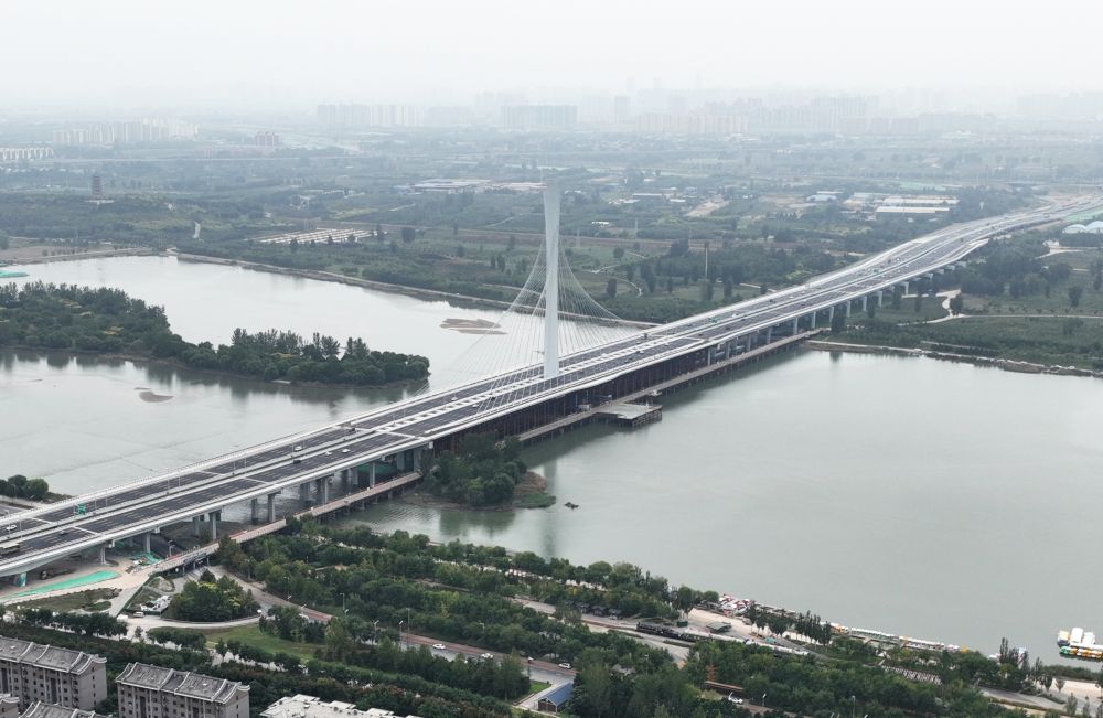 石家莊滹沱河特大橋(2023年9月28日攝,無(wú)人機照片)。新華社記者 朱旭東 攝