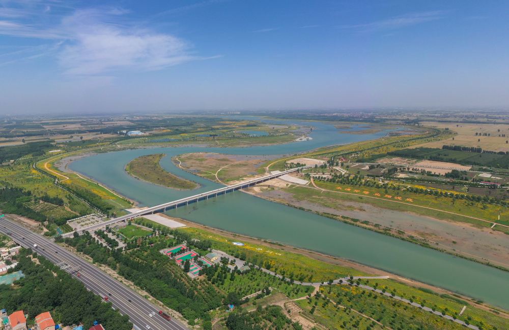 滹沱河石家莊藁城段(2023年6月1日攝,無(wú)人機照片)。新華社記者 朱旭東 攝