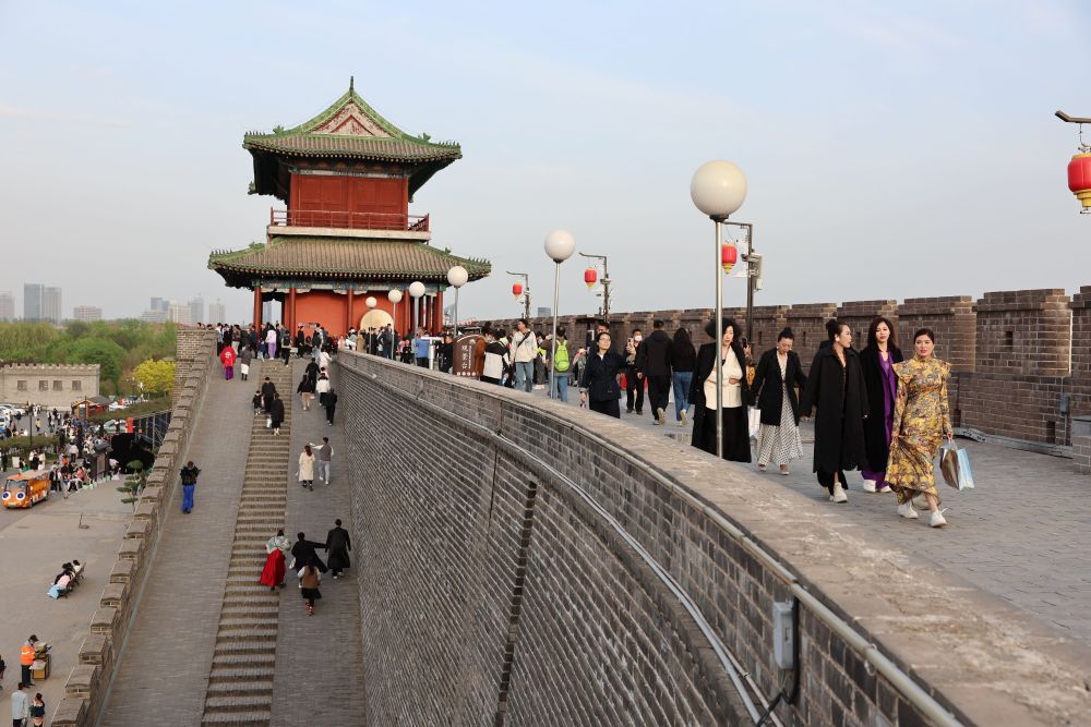 游客在石家莊正定古城游覽(2023年4月15日攝)。新華社記者 朱旭東 攝
