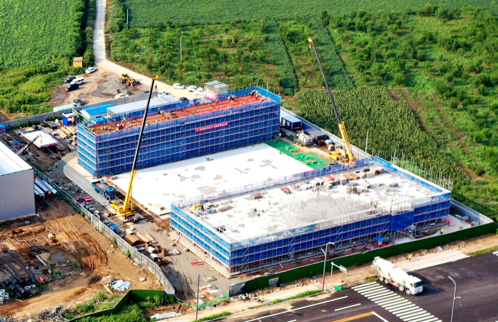 在沈陽(yáng)市鐵西區拍攝的德國賀利氏特種光源項目建設現場(chǎng)(2023年8月28日攝,無(wú)人機照片)。新華社記者 楊青 攝