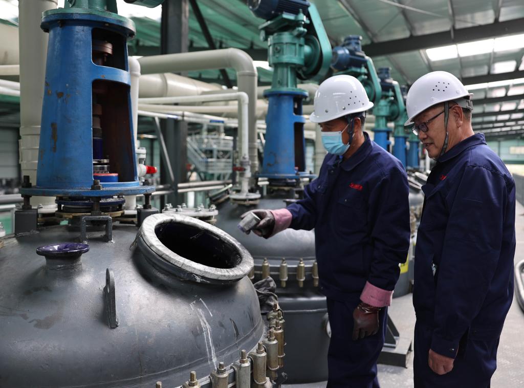 工人在華池縣石墨深加工項目車(chē)間進(jìn)行測溫。