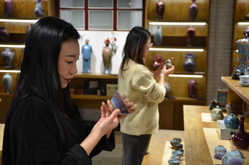 游客來(lái)到鈞瓷工業(yè)文化園,可以在鈞瓷技藝傳習館體驗鈞瓷制作過(guò)程,在神垕老食堂品嘗當地特色美食,還可以到文創(chuàng )商店挑選一件喜歡的鈞瓷小器帶回家?!拔覀兿M慰驮诖烁惺茆x瓷工藝的歷史傳承,沉浸式體驗鈞瓷文化?!眻@區相關(guān)負責人介紹。