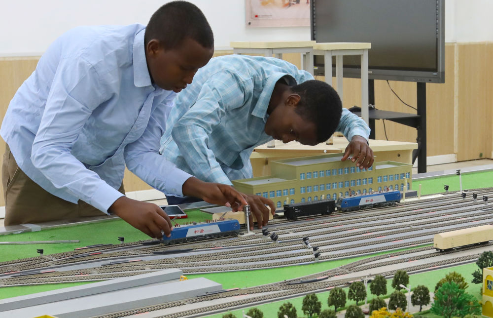 在位于吉布提首都吉布提市的吉布提工商學(xué)校,學(xué)生在魯班工坊鐵道運營(yíng)沙盤(pán)教學(xué)區學(xué)習(2022年9月19日攝)。新華社記者 董江輝 攝