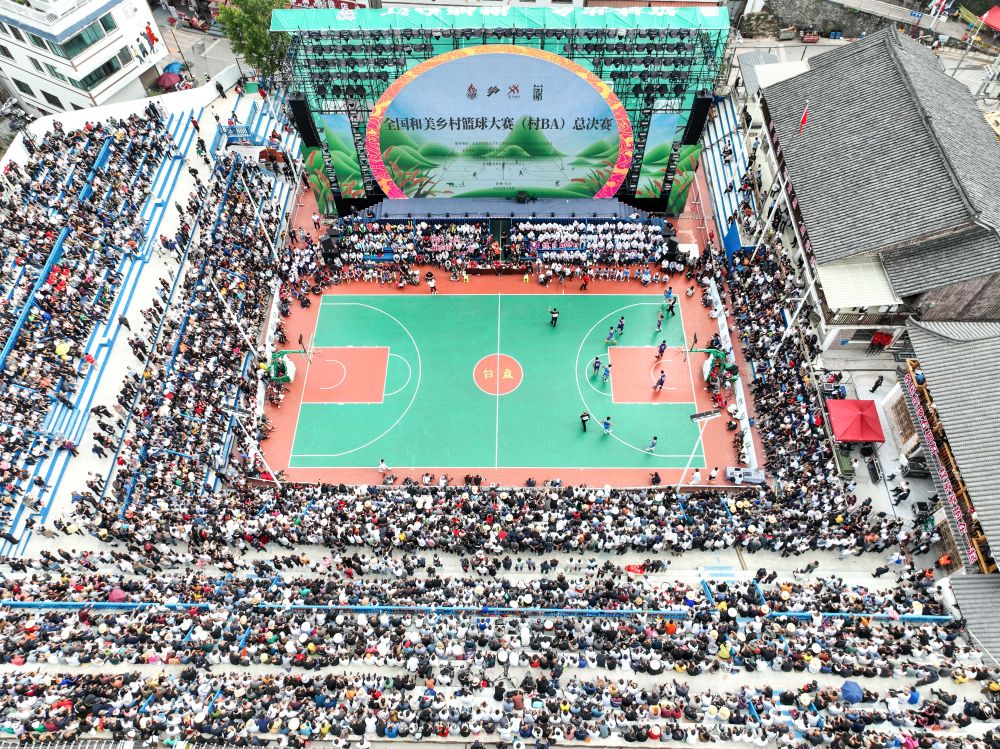 這是2023年10月25日拍攝的全國和美鄉村籃球大賽總決賽現場(chǎng)(無(wú)人機照片)。新華社記者 歐東衢 攝