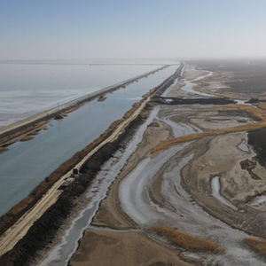 記者在格爾木市南霍布遜湖岸邊看到,湖堤有個(gè)100余米的豁口。岸邊的格爾木藏格鉀肥公司利用這一豁口,私自取用南霍布遜湖鹵水用于溶礦。2019年9月至2023年9月,累計違規取鹵水1.26億立方米。