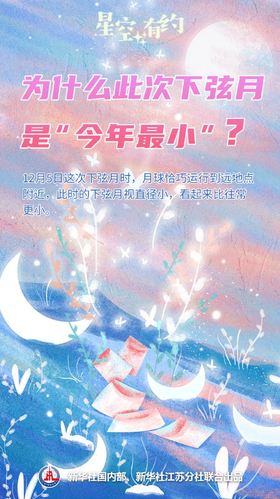 公元2023年的上弦月和下弦月各出現12次。12月5日月球經(jīng)過(guò)遠地點(diǎn),當日出現的下弦月是本年度離地球最遠的一次。為什么此次下弦月是“今年最小”?王科超表示,12月5日這次下弦月時(shí),月球恰巧運行到遠地點(diǎn)附近,此時(shí)的下弦月視直徑小,看起來(lái)比往常更小。