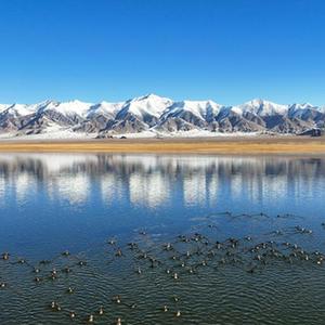 記者和巡護員一起,自西向東巡護保護區。一路顛簸行進(jìn),沿途不時(shí)可見(jiàn)到三五成群的藏羚羊,點(diǎn)綴在草原上。當發(fā)現車(chē)輛經(jīng)過(guò)時(shí),它們會(huì )停下步伐,齊刷刷地抬頭望來(lái),耳朵直立,機敏地判斷是否有危險。向遠望去,沙漠與沙湖相映,高原野兔四處觀(guān)望,黑頸鶴翩翩起舞,讓這個(gè)“無(wú)人區”生機勃勃。