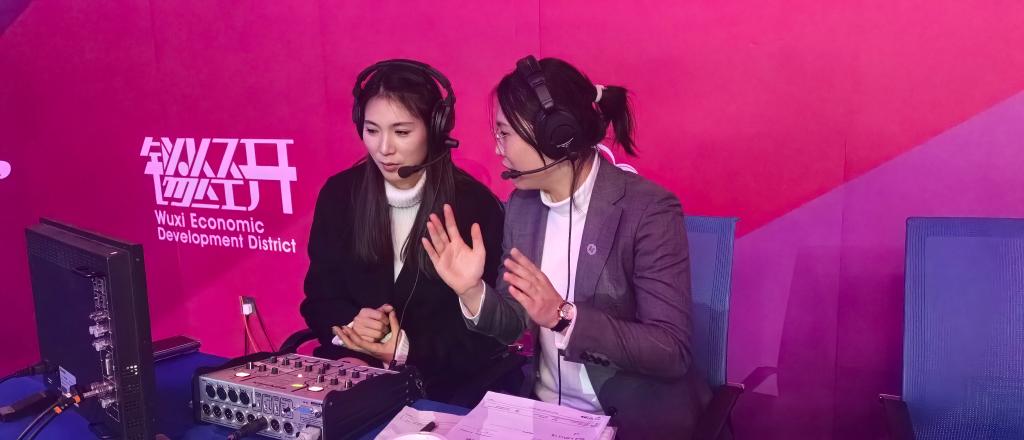 鄭姝音(左)正在解說(shuō)比賽