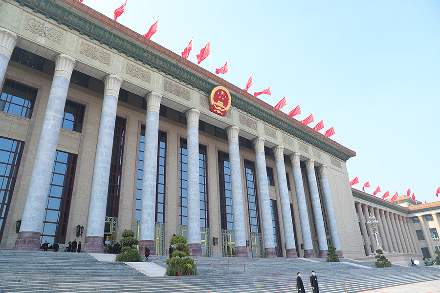 全國政協(xié)十四屆一次會(huì )議于3月4日下午3時(shí)在北京人民大會(huì )堂開(kāi)幕。開(kāi)幕會(huì )上,與會(huì )全國政協(xié)委員將聽(tīng)取政協(xié)全國委員會(huì )常務(wù)委員會(huì )工作報告和政協(xié)全國委員會(huì )常務(wù)委員會(huì )關(guān)于提案工作情況的報告。圖為人民大會(huì )堂外景。(新華網(wǎng)記者 焦鵬 攝)