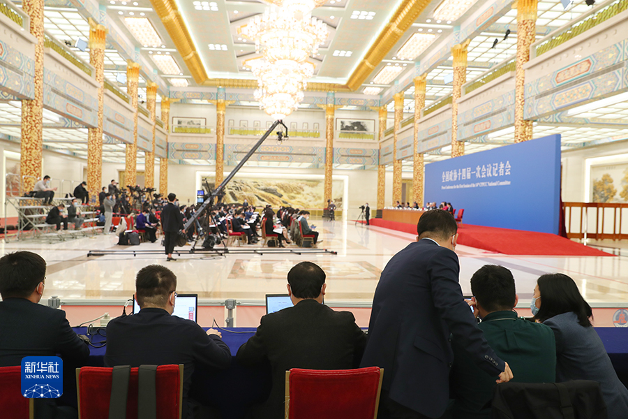 3月5日下午3時(shí),全國政協(xié)十四屆一次會(huì )議在人民大會(huì )堂三樓金色大廳舉行民主黨派中央和全國工商聯(lián)領(lǐng)導人記者會(huì ),請各民主黨派中央主席和全國工商聯(lián)主席出席并回答記者提問(wèn)。圖為現場(chǎng)直播團隊正在進(jìn)行直播。新華網(wǎng)記者 焦鵬 攝