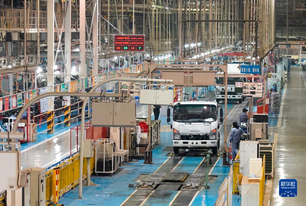 這是慶鈴汽車(chē)(集團)有限公司繁忙的商用車(chē)整車(chē)生產(chǎn)線(xiàn)(2023年2月7日攝)。新華社記者 劉潺 攝