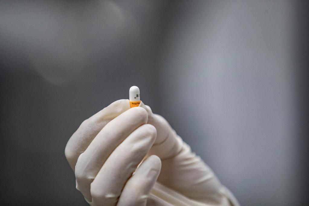 2022年12月16日,在重慶市永川區新領(lǐng)先(重慶)生物醫藥一體化研發(fā)服務(wù)基地,新領(lǐng)先重慶研究院的研發(fā)人員查看全自動(dòng)硬膠囊充填機制作的樣品膠囊藥。新華社記者 黃偉 攝