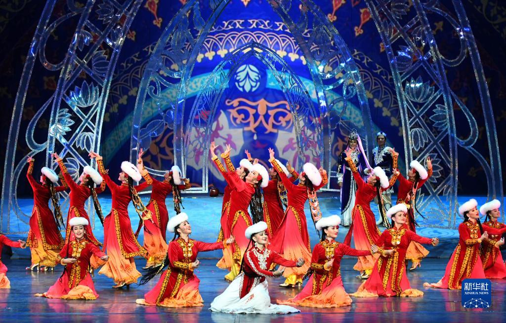 在新疆木卡姆藝術(shù)團劇場(chǎng),演員在表演《木卡姆印象》(2017年8月3日攝)。新華社記者 王菲 攝