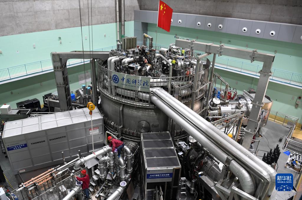 在中科院合肥物質(zhì)科學(xué)研究院,工作人員對有“人造太陽(yáng)”之稱(chēng)的全超導托卡馬克核聚變實(shí)驗裝置(EAST)進(jìn)行升級改造(2021年4月13日攝)。新華社記者 劉軍喜 攝