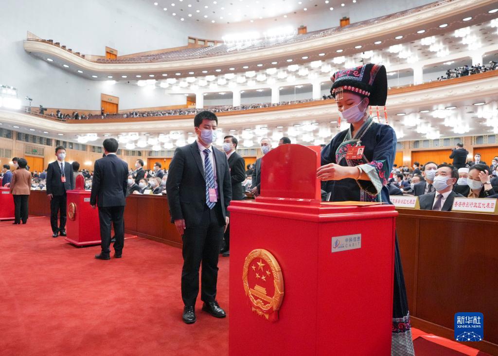 3月11日,十四屆全國人大一次會(huì )議在北京人民大會(huì )堂舉行第四次全體會(huì )議。這是代表在投票。