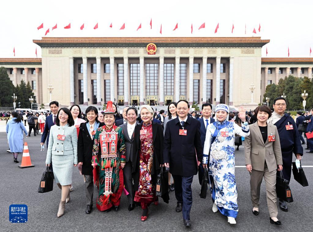 3月13日,第十四屆全國人民代表大會(huì )第一次會(huì )議在北京人民大會(huì )堂舉行閉幕會(huì )。這是閉幕會(huì )后,代表走出人民大會(huì )堂。