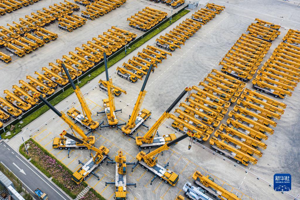 這是2022年5月9日拍攝的江蘇徐工集團重型機械有限公司的產(chǎn)品調試場(chǎng)(無(wú)人機照片)。新華社發(fā)