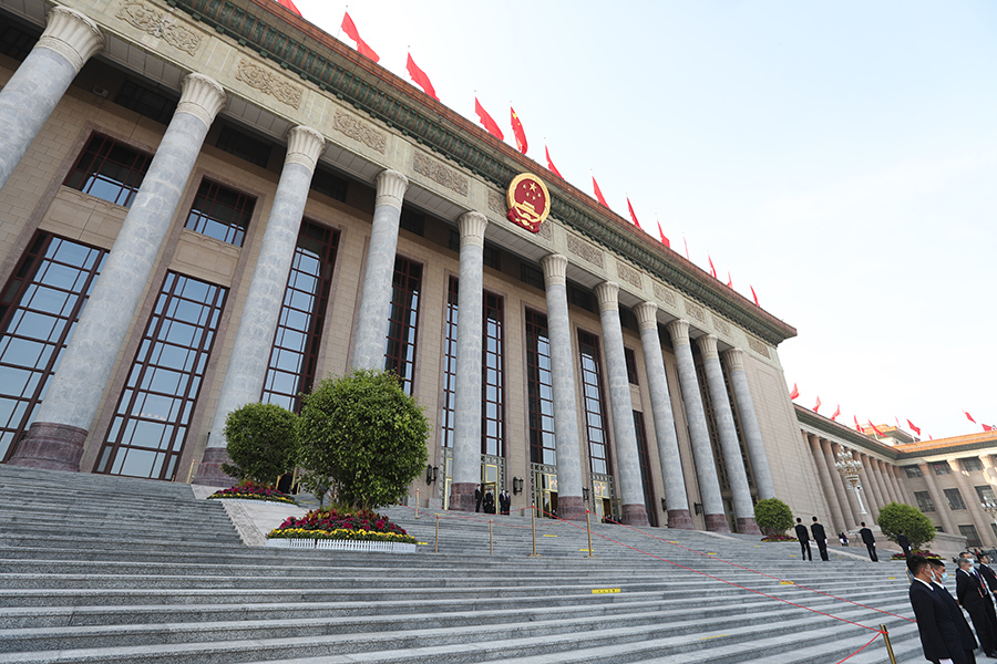 中國共產(chǎn)黨第二十次全國代表大會(huì )新聞發(fā)言人于2022年10月15日(星期六)16時(shí)30分在人民大會(huì )堂舉行新聞發(fā)布會(huì )。圖為人民大會(huì )堂外景。(新華網(wǎng) 王翰林 攝)?