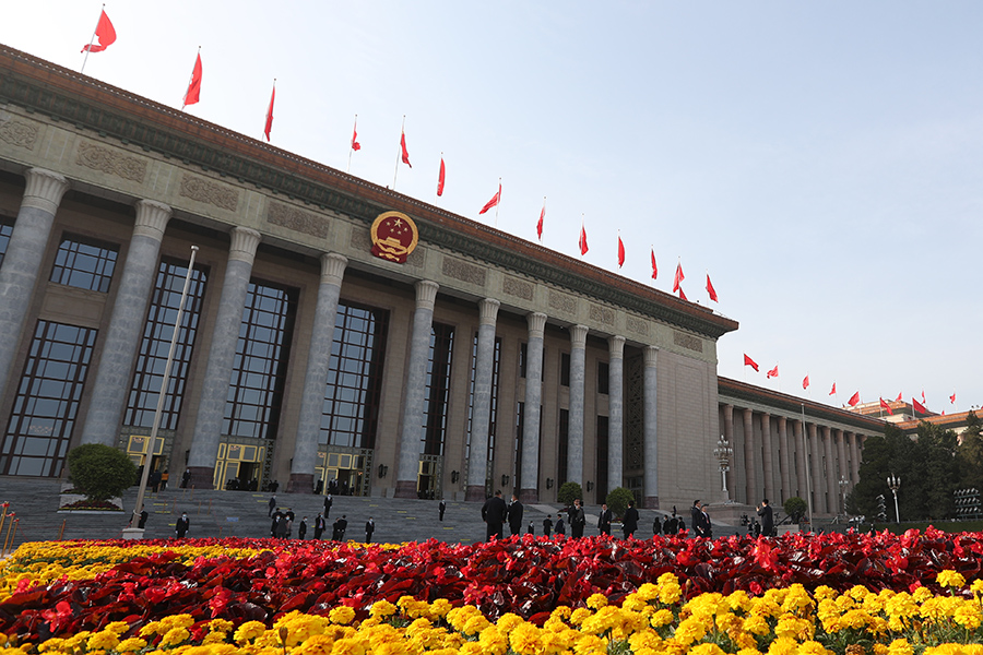 中國共產(chǎn)黨第二十次全國代表大會(huì )新聞發(fā)言人于2022年10月15日(星期六)16時(shí)30分在人民大會(huì )堂舉行新聞發(fā)布會(huì )。圖為人民大會(huì )堂外景。(新華網(wǎng) 王翰林 攝)