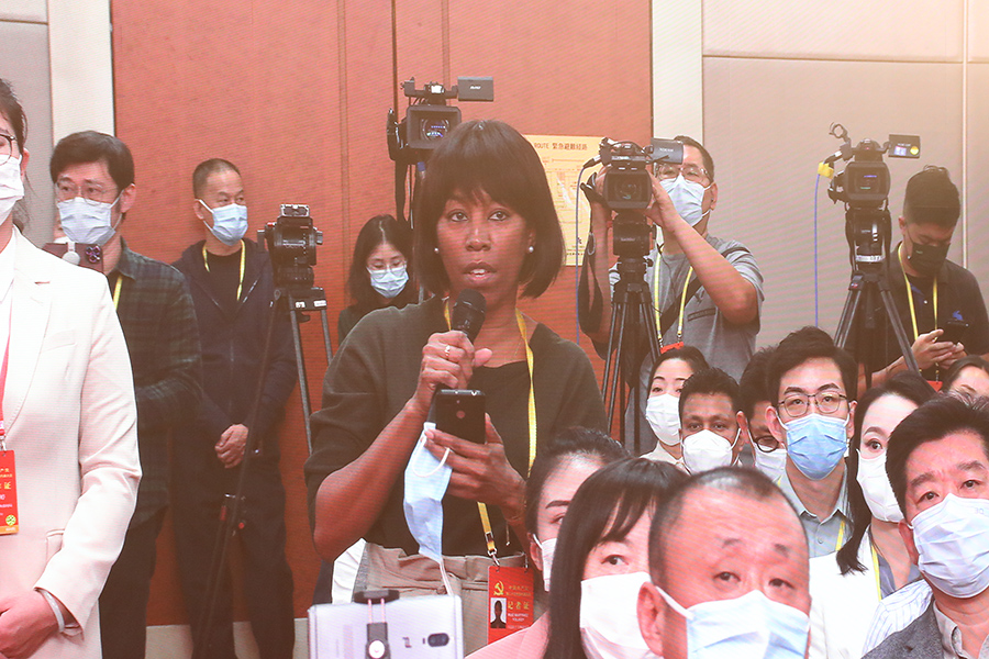 中國共產(chǎn)黨第二十次全國代表大會(huì )新聞發(fā)言人2022年10月15日(星期六)16時(shí)30分在人民大會(huì )堂舉行新聞發(fā)布會(huì )。圖為古巴拉美通訊社記者。(新華網(wǎng) 王翰林 攝)