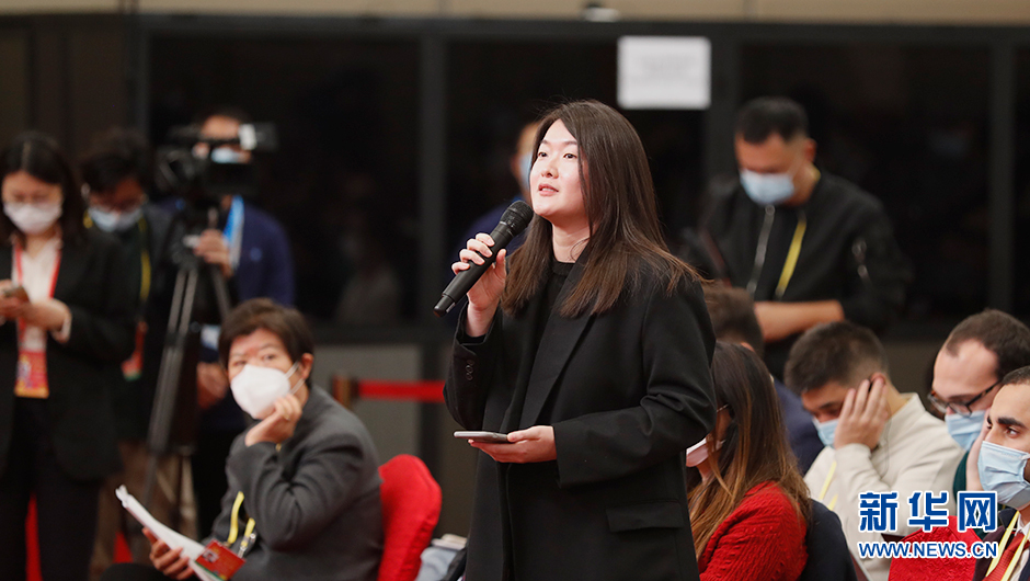 10月17日(星期一)10:00,二十大新聞中心在梅地亞新聞中心二層新聞發(fā)布廳舉辦第一場(chǎng)記者招待會(huì )。這是新加坡聯(lián)合早報記者在分會(huì )場(chǎng)提問(wèn)。(新華網(wǎng) 陳杰 攝)