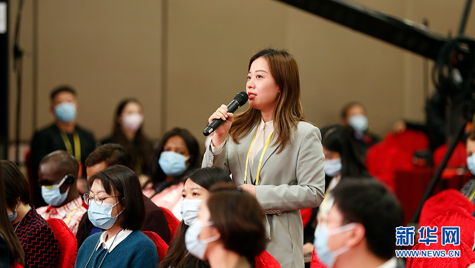 10月17日(星期一)15:00,二十大新聞中心在梅地亞新聞中心二層新聞發(fā)布廳舉辦第二場(chǎng)記者招待會(huì )。圖為澎湃新聞記者在分會(huì )場(chǎng)提問(wèn)。(新華網(wǎng) 陳杰 攝)
