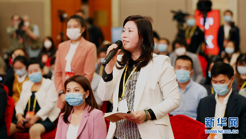 10月18日(星期二)19:30,二十大新聞中心在梅地亞新聞中心二層新聞發(fā)布廳舉辦第二場(chǎng)集體采訪(fǎng)。圖為香港紫荊雜志記者在分會(huì )場(chǎng)提問(wèn)。(新華網(wǎng) 陳杰 攝)