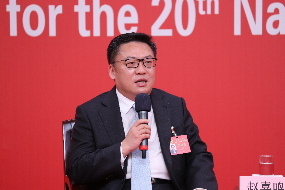 10月18日,中國共產(chǎn)黨第二十次全國代表大會(huì )新聞中心舉行集體采訪(fǎng)。黑龍江、上海、江蘇、浙江、安徽、福建、江西代表團新聞發(fā)言人出席,介紹代表團學(xué)習討論二十大報告情況,并回答記者提問(wèn)。這是上海市委常委、宣傳部部長(cháng)趙嘉鳴在回答記者提問(wèn)。(新華網(wǎng)發(fā))