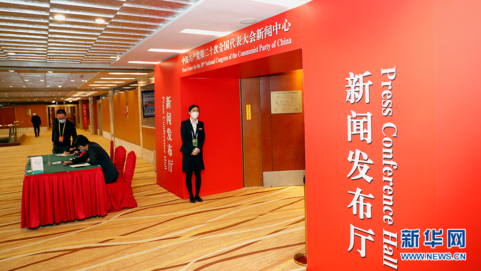 10月19日(星期三)10:00,二十大新聞中心將在梅地亞新聞中心二層新聞發(fā)布廳舉辦第三場(chǎng)記者招待會(huì )。圖為記者招待會(huì )前新世紀日航飯店三層世紀廳分會(huì )場(chǎng)。(新華網(wǎng) 陳杰 攝)