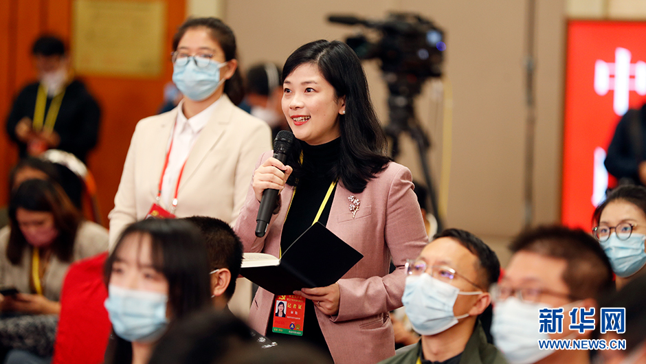 10月19日(星期三)10:00,二十大新聞中心在梅地亞新聞中心二層新聞發(fā)布廳舉辦第三場(chǎng)記者招待會(huì )。圖為香港中評社記者在分會(huì )場(chǎng)提問(wèn)。(新華網(wǎng) 陳杰 攝)