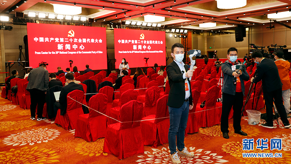 10月19日(星期三)15:00,二十大新聞中心將在梅地亞新聞中心二層新聞發(fā)布廳舉辦第三場(chǎng)集體采訪(fǎng)。圖為集體采訪(fǎng)前新世紀日航飯店三層世紀廳分會(huì )場(chǎng)現場(chǎng)。(新華網(wǎng) 陳杰 攝)