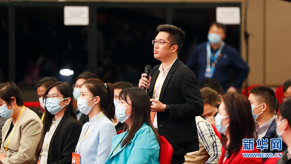 10月19日(星期三)15:00,二十大新聞中心在梅地亞新聞中心二層新聞發(fā)布廳舉辦第三場(chǎng)集體采訪(fǎng)。圖為越南國家電視臺記者在分會(huì )場(chǎng)提問(wèn)。(新華網(wǎng) 陳杰 攝)