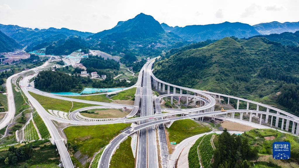 這是貴州石阡至玉屏高速公路花橋互通(2021年6月17日攝,無(wú)人機照片)。新華社記者 陶亮 攝