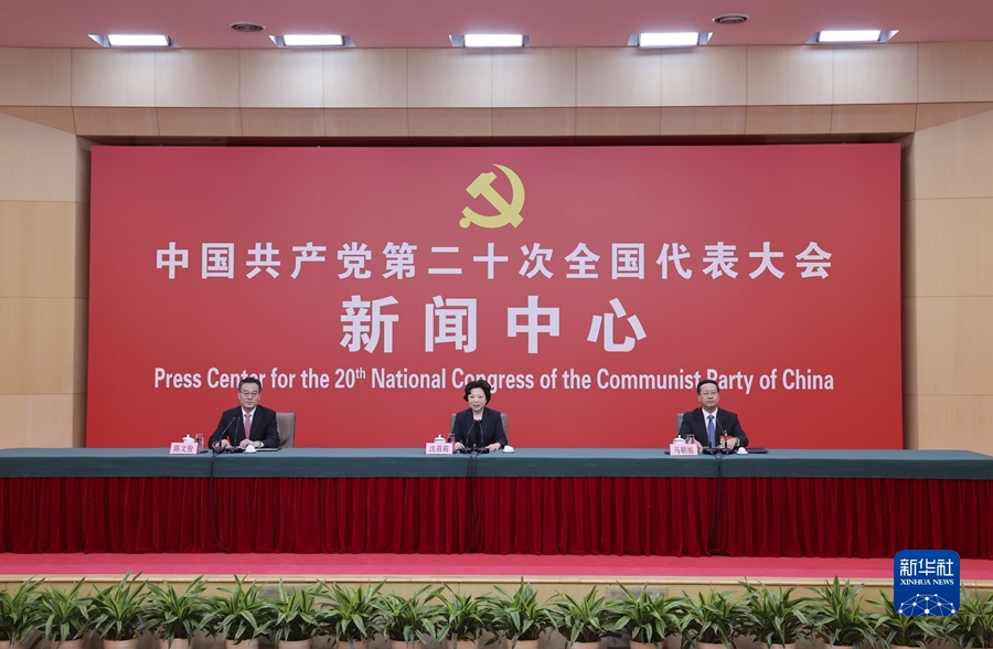 10月20日,中國共產(chǎn)黨第二十次全國代表大會(huì )新聞中心舉行記者招待會(huì )。中央對外聯(lián)絡(luò )部副部長(cháng)沈蓓莉,外交部黨委委員、副部長(cháng)馬朝旭圍繞“習近平外交思想指引中國特色大國外交開(kāi)拓前行”主題與記者交流。