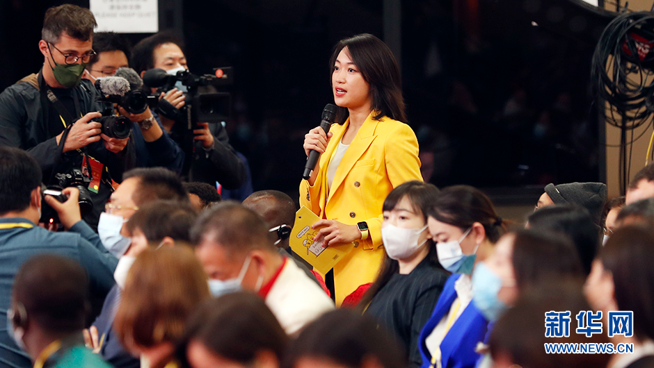 10月20日(星期四)10:00,二十大新聞中心在梅地亞新聞中心二層新聞發(fā)布廳舉辦第四場(chǎng)記者招待會(huì )。圖為中央廣播電視總臺CGTN記者在分會(huì )場(chǎng)提問(wèn)。(新華網(wǎng) 陳杰 攝)