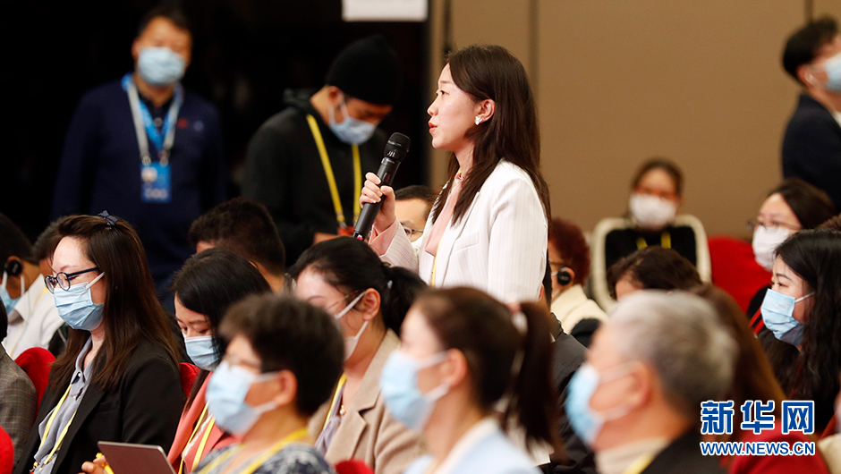 10月20日(星期四)19:30,二十大新聞中心在梅地亞新聞中心二層新聞發(fā)布廳舉辦第五場(chǎng)集體采訪(fǎng)。圖為經(jīng)濟參考報記者在分會(huì )場(chǎng)提問(wèn)。(新華網(wǎng) 陳杰 攝)
