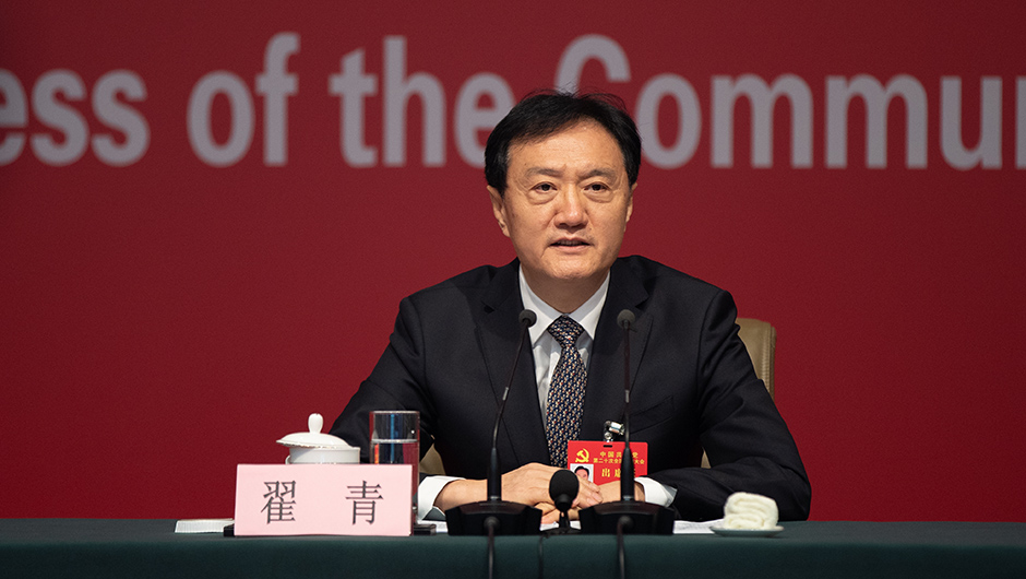10月21日,二十大新聞中心舉辦第五場(chǎng)記者招待會(huì ),請生態(tài)環(huán)境部黨組成員、副部長(cháng)翟青圍繞“建設人與自然和諧共生的美麗中國”主題與記者交流。圖為翟青在記者招待會(huì )上。(新華網(wǎng) 劉廈 攝)
