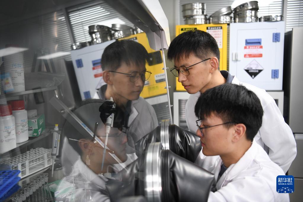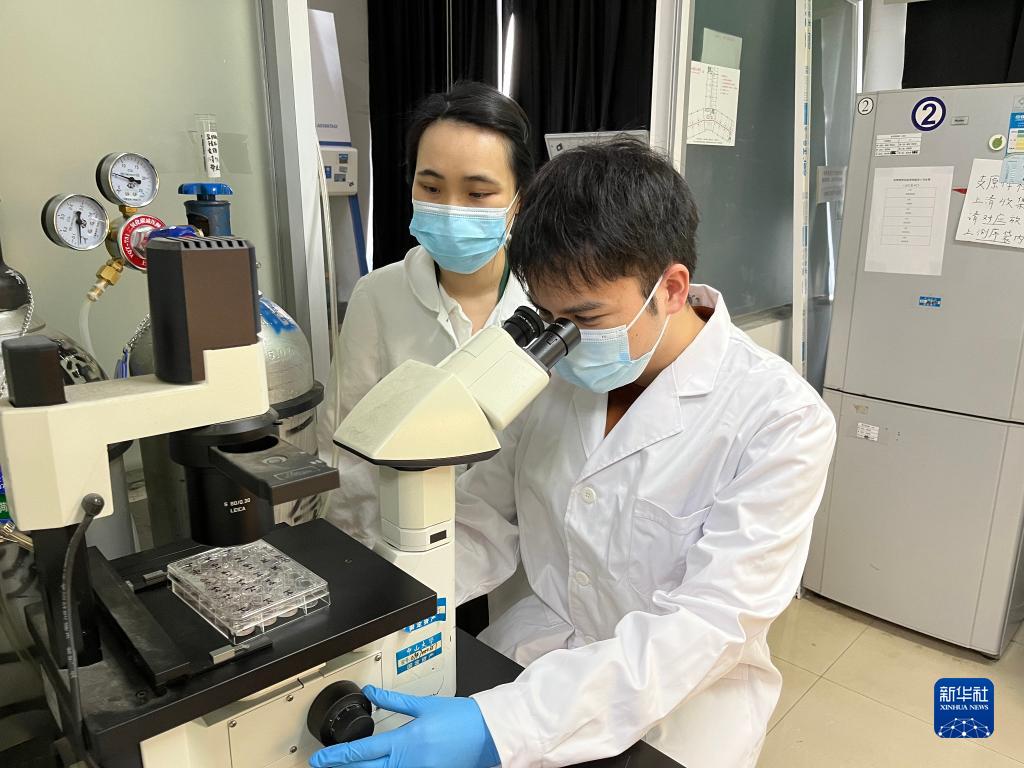 10月20日,廣東中山大學(xué)中山醫學(xué)院博士研究生張賢濤(右)在實(shí)驗室。新華社發(fā)
