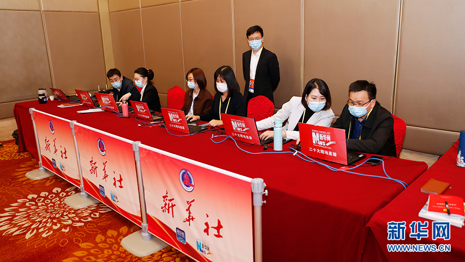 10月21日(星期五)10:00,二十大新聞中心將舉辦第五場(chǎng)記者招待會(huì )。圖為記者在分會(huì )場(chǎng)工作。(新華網(wǎng) 陳杰 攝)