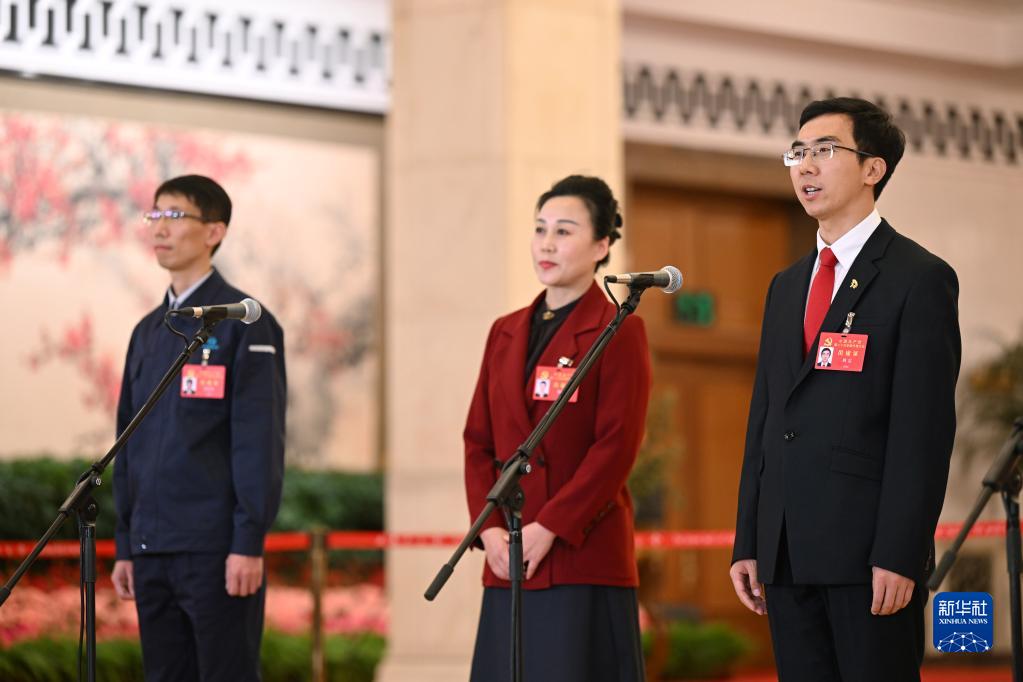 這是閉幕會(huì )后,洪家光、楊浪浪、周雷代表(自左至右)接受采訪(fǎng)。