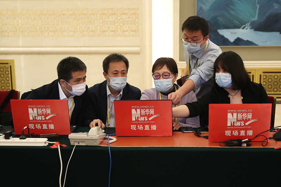 新華網(wǎng)記者在現場(chǎng)進(jìn)行直播準備